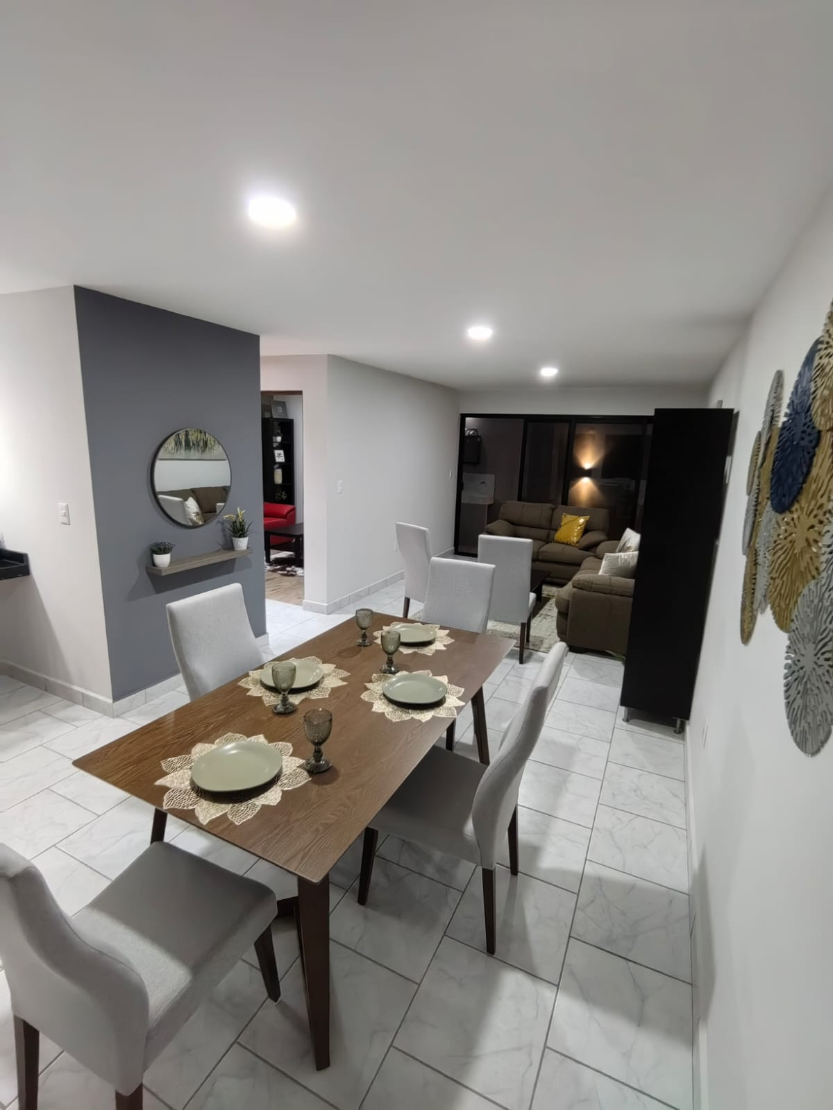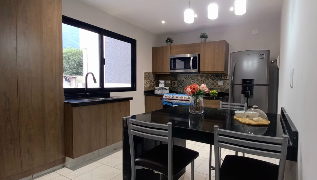 Cocina equipada, sala comedor, 4 habitaciones ( una de ellas en planta baja con baño completo), medio baño de visitas.